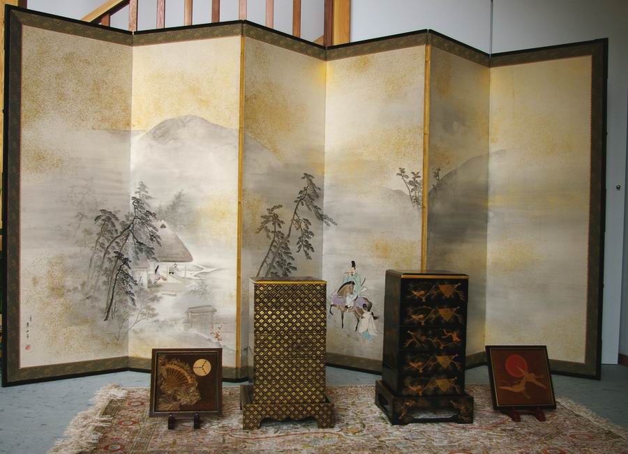 かつて屏風(びょうぶ)は、可動式の壁であり、バーチャルな窓でした。季節により気分により、屏風を開けばあたかも風雅な庭園をそぞろ歩くように、また物語の世界に入り込んだように、部屋にいながらにして想像の世界が広がります。