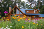土がむき出しだった、建物の前に、ワイルドフラワーのタネを蒔いておいたのですが、2ヶ月ほどたって見事な花を咲かせ始めました。思いがけずきれいです。もっとたくさん蒔いておけばよかった。