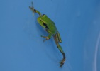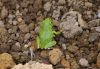 ニホンアマガエルが、花畑をはじめところどころで見られます。土の上を歩いているので、干からびないのかと思ったら、水辺で生活しているのではもともとないようです。捕まえてバケツに入れ、水をいれてみました。喜ぶかと思ったら、必死で水から上がろうとしていました。 実は、ニホホンアマガエルは樹上での生活に適応していて、水辺の植物の上や森林などに生息するのだそうです。