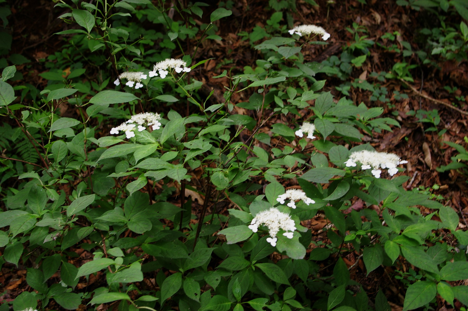 平地ではアジサイの季節も終わりですが、青山吉風の裏の林ではちょうど今がシーズンです。アジサイは無数の園芸品種が開発されていますが、このヤマアジサイはその原種の一つ。沢の近くや木漏れ日があたる林に自生しています。派手な花ではありませんが、夏を迎えようとしている森に潤いを与えてくれます。