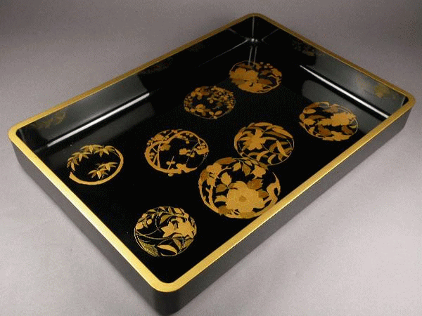広蓋(ひろぶた)は、現在でも結納の時などに使われていますが、贈り物や引き出物を載せて相手に差し上げるためのものです。一度しか使わないためでしょうか、現在販売されているものは樹脂塗装でプラスティック製のものが多いようですが、昔はもちろん木製で丁寧に作られ、豪華な蒔絵を施されたものも少なくありません。儀礼的な用途に使われるためか、古いものでもほとんど傷みのないまま残っている品を見つけることができます。