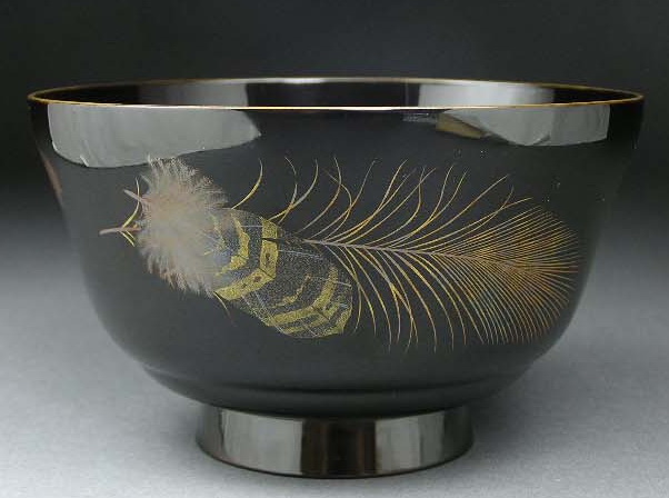 研出羽根図蒔絵盃洗一対塗箱付(江戸後期)