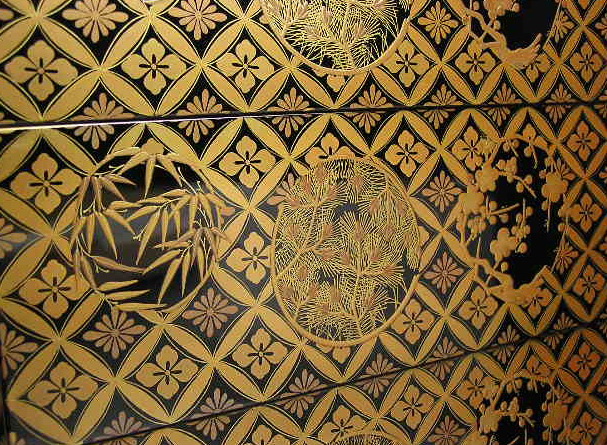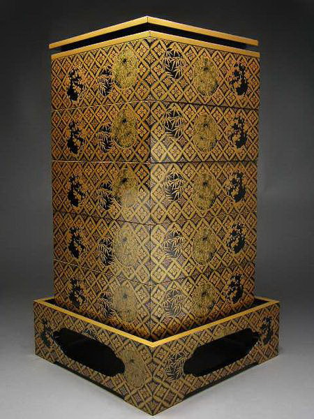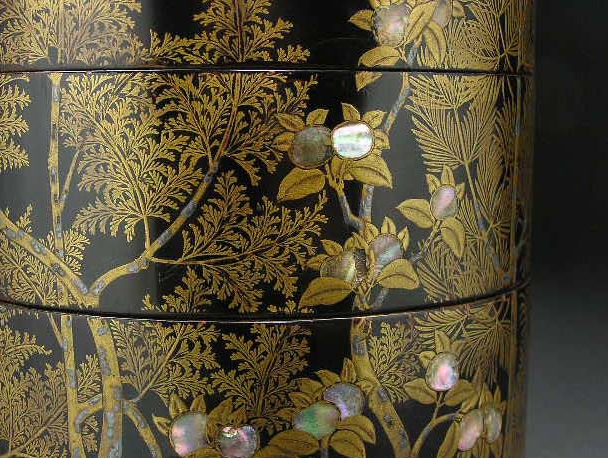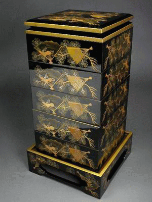 七宝繋松竹梅蒔絵五段重台共(明治初期)