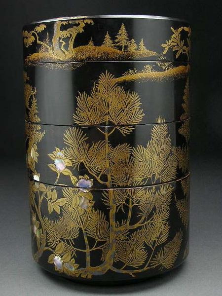 蒔絵螺鈿松花図丸重(江戸中期)