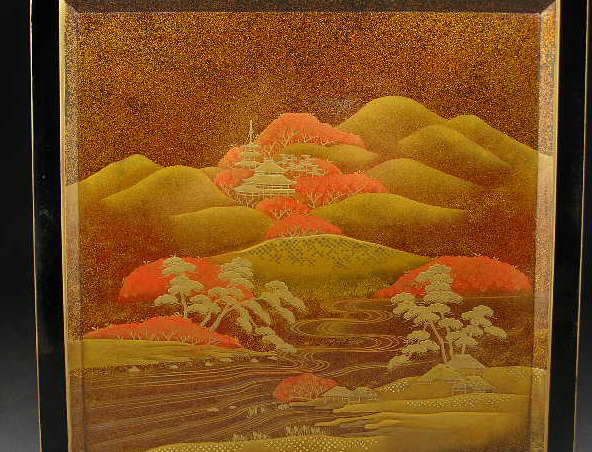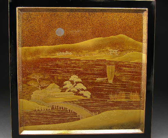 非常に良好な状態で残っていた、最高級蒔絵重箱です。蓋裏には桜咲く春の山里と、銀の月が入り残る秋の漁村が描き分けられています。