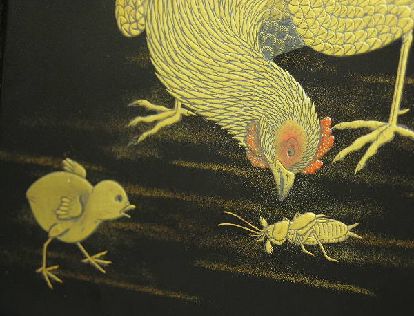 鳥の羽毛のふわふわした質感や軽さまで、蒔絵で見事に表現した傑作。