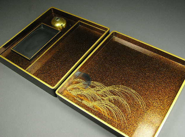 鶏虫内武蔵野蒔絵硯箱(江戸中期)